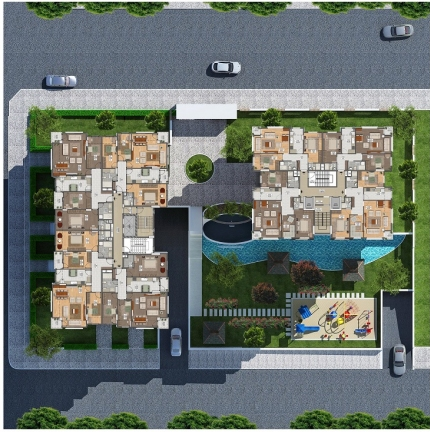 bölge planlarındaki emsal transferi kullanılarak 90 adet kapalı otoparkı , çocuk oyun alanları bölgeye büyük değer katmıştır.